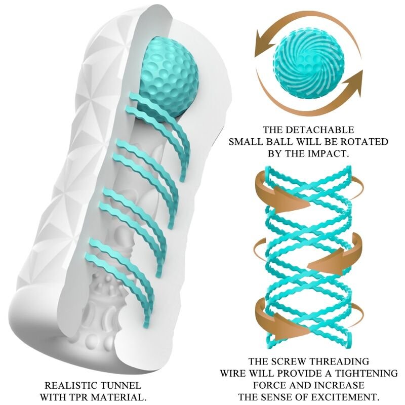 Piccolo strumento per un divertimento gigantesco con la masturbazione! Questo masturbatore trasparente e riutilizzabile ha una spirale rotante e una sfera di stimolazione sul lato, la spirale rotante fa ruotare il masturbatore durante la penetrazione e la sfera sulla parte superiore può stimolare il punto giusto e darti una nuova sensazione. La guaina ha al suo interno una texture stimolante ed eccitante che massaggia intensamente e dinamicamente il pene durante il lavoro manuale. Puoi usare questo elegante masturbatore delicato sulla pelle ancora e ancora. Molto facile da usare e puro piacere!